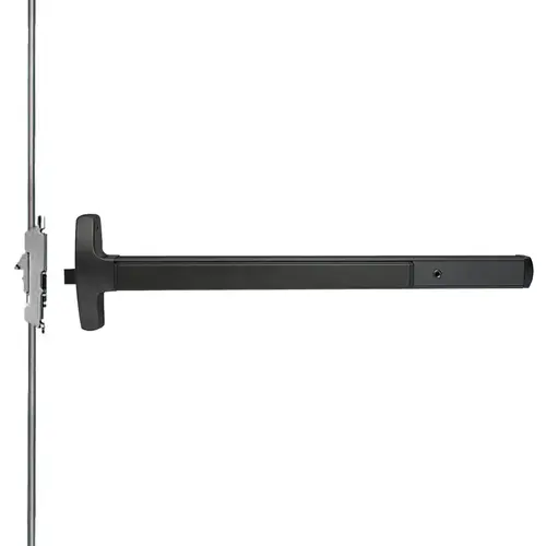 Grade 1 Concealed Vertical Rod Exit Bar, Narrow Stile Pushpad, 4' Door Width, 84" Door Height, Classroom Function, Dane Lever with Escutcheon, Electric Latch Retraction, Request to Exit Switch, Hex Key Dogging, Flat Black Coated Finish, Right Hand Reverse