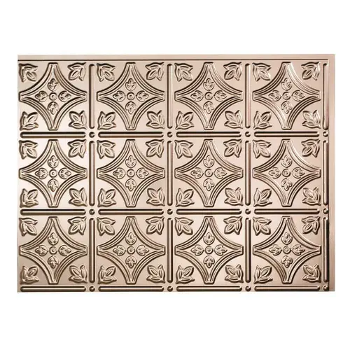 Transform an ordinary kitchen or bathroom into a stylish space. Decorative thermoplastic backsplash panels for use in kitchens and bathrooms provide the classic look of traditional tin backsplash at a fraction of the cost. Whether remodeling an entire room or simply accenting a small area, these backsplash panels create an instant designer look. Unlike traditional tin panels that require decades to acquire an antique look, these backsplash panels have that turn-of-the-century authenticity right out of the box. Finishes range from matte white or brushed aluminum to Bermuda bronze or cracked copper. Adding an artistic element to your kitchen or bathroom has never been easier. The backsplash panels can be cut with a snip, scissors or utility knife for quick and easy installation. Installs with 2-sided tape or polyurethane construction adhesive.