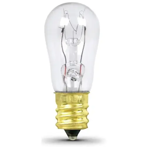 FEIT 6w S6 Candelabra Incandescent Clear Appliance Bulb Package Of 24. Dimmable. 6 Watts. 120 Volts. E12 Candelabra Base. 2700k Color Temperature. 30 Lumens. 1,500 Average Life Hours. Mfg #BP6S6/HDRP/12