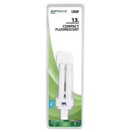 Averages 10,000 hrs life. 2700K, 82 CRI, 780 Lumens, 4-11/32 in maximum length, 13 W fluorescent lamp.