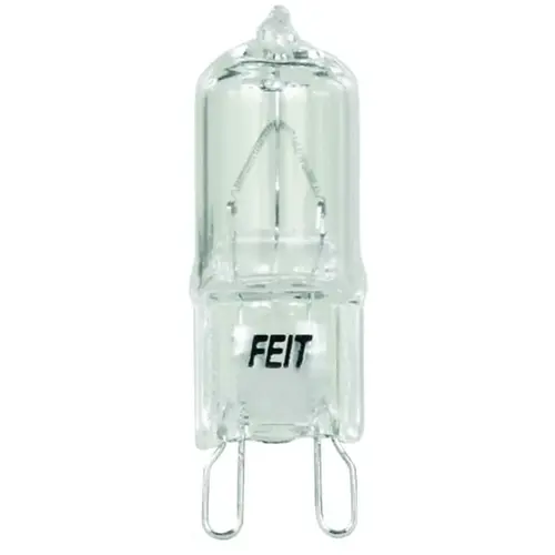 Feit Electric Halogen Bulb, Wattage Rating: 40 W, 120 V, Lamp Base: G9, Lamp Shape: JCD T4, Lamp Finish: Clear, Dimmable, Color Temperature: 3000 K, Average Life: 2000 hr, Dimensions: 1-3/4 in H, Incandescent Equivalent: 40 W