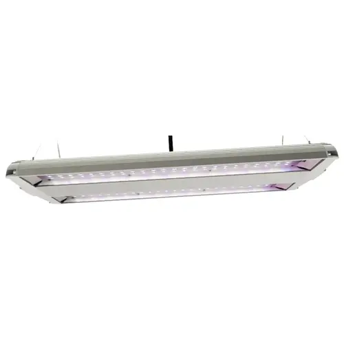 Grow better, stronger plants with the Feit Electric Blue Spectrum Dual 14 in LED grow light. Rated for high humidity, its ideal for all phases of indoor plant growth and is suitable for soil or hydroponic gardens. Our grow lamps emit more light in the useful 449 nm blue spectrum than regular white LED bulbs. Instant full brightness lamps are integrated directly into the fixture so there are no lamps to replace. It includes a 5 ft plug-in cord and a 7 in chains and triangle hooks. Our Blue Spectrum Dual LED grow lights offer low heat emission and low energy consumption, produce even light distribution and have an average life of 25,000 hr / 22.8 years. Choose a no humming, dependable general-purpose grow lighting fixture for your growing needs.
