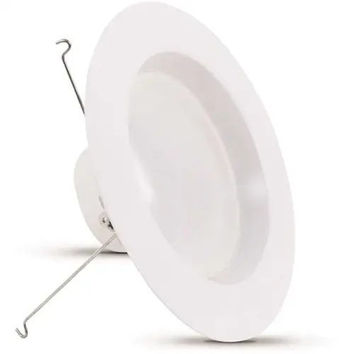 Convert your current recessed lighting to energy saving LED with an Enhance LED Downlight High Output Retrofit Kit with the highest quality energy efficient light. Our high-powered LEDs with a 90+ CRI (color rendering index) rating provide bolder color rendering and enhanced contrast so people and objects appear more realistic and vibrant. This kit will fit most 5 in. / 6 in. recessed cans, includes a warm white LED ideal for higher ceilings or large spaces that is dimmable and will replace a 120-Watt equivalent incandescent bulb. It produces a similar light output (1290 Lumens), uses 17.2-Watt of electricity and up to 85% less energy than a standard incandescent light bulb. Get instant on to full brightness with relatively cool running performance. These Feit Electric Retrofit Kit is have an average life of 50,000-hour / 45.7-year and are RoHS and ENERGY STAR compliant. This kit is easy to install, comes with a standard base adapter and a pre-mounted trim for a hassle- free do-it-yourself installation. The Feit Electric energy saving LED Enhance LED Downlight Retrofit Kit is ideal for residential use in kitchens, living rooms and dining rooms and for commercial use as general lighting in retail and hospitality spaces. Featuring a sleek, white design, this downlight is equipped for use in new construction, remodel and retrofit, replacing your current recessed bulbs.