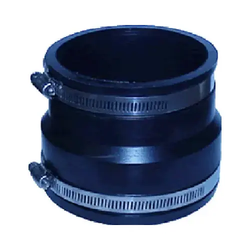 Fernco P1070-44 Flexible Coupling, 4 x 4 in, PVC, Black, 4.3 psi Pressure