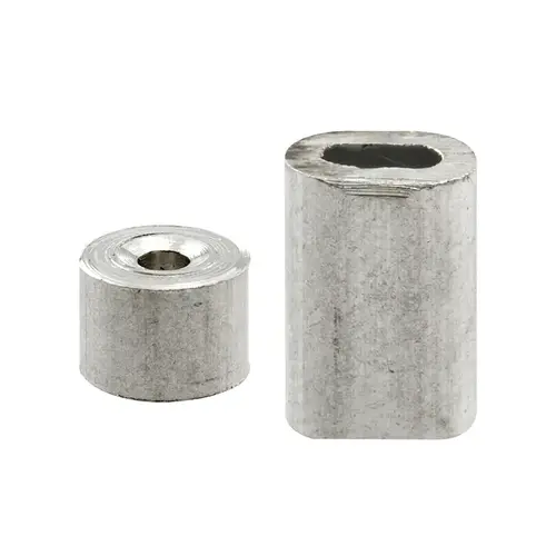 These are extruded aluminum ferrules are used to clamp cable loops into fixed position. The stops finish off end of cable or as a stopping point at any location on cable. Select from eight stock cable sizes.