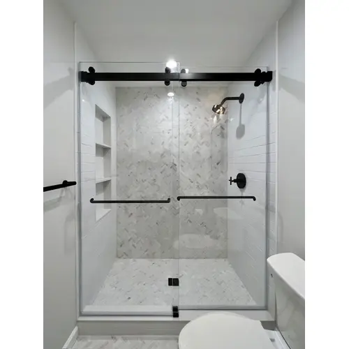 Our popular Napa Series Frameless Bypassing Sliding Shower Door Kit offers a modern, low profile design, that includes a rectangular header and round glass rollers. It's engineered for use with 3/8" (10mm) tempered glazing. Each top glass roller requires one 3/4" (19mm) diameter hole in the glass for proper mounting. Precision bearings and wheels also offer a quiet glide experience. One standard size fits most 180 degree inline applications. Our in stock 73" wide kits can be cut to size.