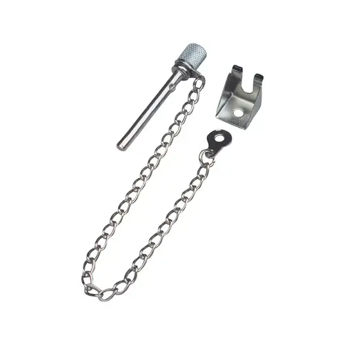 This sliding window pin lock is constructed of steel and comes in an aluminum plating. This is the shortest lock pin manufactured by Prime-Line Products, and it is designed to fit on older style, metal framed windows – usually of single pane glass with very thin sash frame thicknesses. This pin lock features a holder where it can be stored when not in use, and a chain connecting the pin lock to the holder to avoid misplacement of pin. Window pin locks like these are designed to securely lock the sliding sash when in a closed or ventilating position, preventing the active panels from sliding on both horizontal and vertical sliding windows. Installation of this security device requires drilling into the sash frame with a 1/8 in. diameter drill bit, and caution should be used to avoid breaking glass with drill bit. Note: THIS WINDOW PIN LOCK IS DESIGNED TO FIT ON OLDER STYLE, METAL FRAMED WINDOWS – USUALLY OF SINGLE PANE GLASS WITH VERY THIN SASH FRAME THICKNESSES. Similar window pin locks of longer lengths include model numbers U-9858 (2-3/8 in. long) and U-11070 (2-3/4 in. long). Required tools for installation may include the following: Safety glasses, measuring tape, pencil, Phillips head screwdriver, drill, and a 1/16 in. and 1/8 in. drill bit. Installation instructions and fasteners are included with this item.