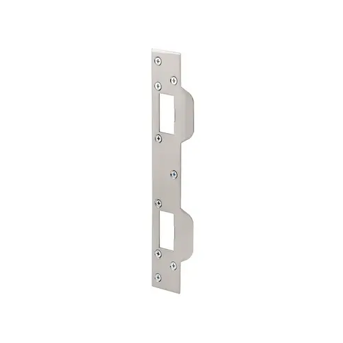 Replace your standard, separate latch and deadbolt strike plates with one designed for maximum security. Our Defender Security Max Security Combo Strike is a one-piece combo plate that comes with six 3 inch long screws for maximum security. These longer screws allow for a strong hold, which helps prevent kick-ins. Made of stamped steel with a satin nickel finish, this door strike is strong and durable, sure to last the test of time. Installation is quick and easy, and the door strike fastens into jamb and door frame with screws. Some mortising and pilot hole drilling may be required for a flush install. This door strike features slightly taller latch and bolt openings to accommodate door hardware spaced from 5-1/2 in. to 6 in. hole centers. *Installation note: It is best to pilot drill a hole for the 3 inch long screws and use a hand operated screw driver to install the 3 inch long screws.