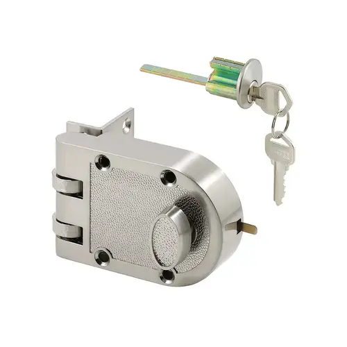 Protect yourself and your family against intruders with our strong, durable deadlock. The jimmy-resistant design prohibits forced entry by spreading of door frames. It provides added security to your home by securing your door to its jamb and includes a tamper-resistant shutter guard to deter unwanted entry by intruders. Constructed of diecast metal with a satin nickel finish, this single cylinder deadbolt is strong, made of high-quality materials and durable, giving you peace of mind that your home will remain protected. This single cylinder deadlock is a surface-mounted, cross-bolt locking device which can be mounted to 1-3/8" to 2-3/8" thick, wood or metal doors – on the inside or outside of left- or right-hinged doors. The lock kit includes an angled strike, a rim cylinder, two keys (keyed differently, but also available keyed alike), a cylinder trim ring, fasteners, a mounting plate, easy-to-install instructions and a tamper-resistant shutter guard. This lock requires a 1-1/4" hole and uses Segal keyway. Installation tip: Snap-off or cut-off end sections of tailpiece as needed, if it is too long for your door. Having the tailpiece too long can negatively affect the performance of the lock. Use pliers to snap-off, a hacksaw or small disk to cut-off, and a file to remove sharp edges and burrs.