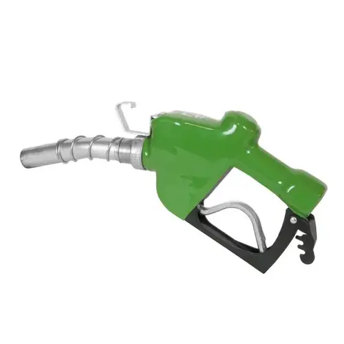 1 in Automatic Nozzle for gasoline, diesel, E15, biodiesel to B20 and kerosene. Includes grip spring on spout, angled inlet to reduce hose wear, heavy-duty green weather-resistant cover and three-position hold open latch.
