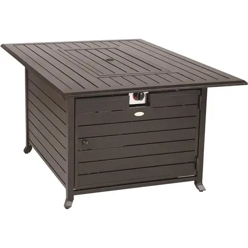 We are proud to offer our multifunctional Extruded Aluminum Rectangular LPG Fire Pit. This 55,000 BTU unit operates on a standard 20 lbs. propane tank which safely sits underneath the unit and is accessible through a hinged door. Our Extruded Aluminum Rectangular LPG Fire Pit not only functions as a fire pit, but an outdoor patio table as well with its convenient Extruded aluminum fire bowl lid. This unit produces a beautiful full flame. Comes complete with clear fire glass (18 lbs.) and covers for fire pit and propane tank.