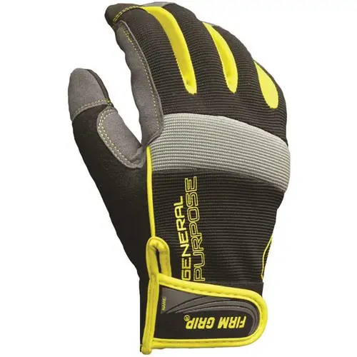 FIRM GRIP General Purpose Gloves are made with durable synthetic leather and spandex. They are designed with comfort and high performance in mind. Stretch spandex on the front of the hand and in between fingers means a perfect fit and breathable comfort on the job site or at home.