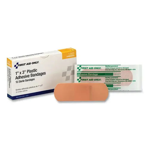 First Aid Only, Inc 1002 Plastic Adhesive Strip, 1 in x 3 in, Bandages, 16/Box Beige - pack of 16