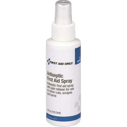 The Antiseptic Spray helps decrease germs and prevent infection in skin abrasions and cuts. The pump spray bottle makes application easy. The antiseptic spray in the pump bottle is ideal for a first aid kit or as a stand alone supply.