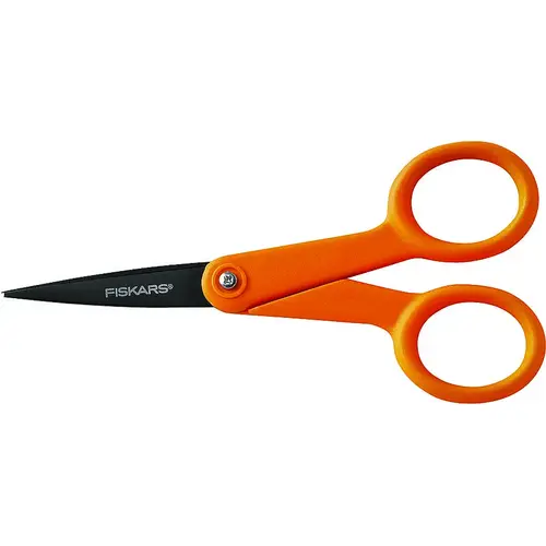 Ideally sized for quick snips and detailed cutting on materials with sticky adhesives. These small, sharp detail scissors with non-stick blades are a must-have for anyone who needs to make tight cuts on materials with sticky adhesives. High-grade, stainless-steel blades feature a precision-ground edge that stays sharp longer and cuts all the way to the tip, essential for anyone who cuts fabric. The non-stick coating means the blades won't get gummed up when you're cutting materials with adhesives and a lightweight double-loop handle provides excellent control.