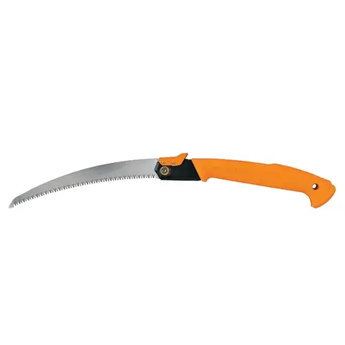 The Fiskars Pro folding saw features a curved TaperTooth blade for 2X faster cuts. This lightweight saw won't bind, removing more material with every pull for an easy, efficient way to take down thick branches. Designed for ultimate durability, this impact-resistant saw features a robust handle and locking mechanism that won't disengage, as well as a replaceable, precision ground, steel saw blade for long-lasting sharpness. Additionally, multiple grip positions with Softgrip touchpoints and a high-visibility handle all translate into a superior ergonomic design, resulting in enhanced comfort and control, as well as reduced fatigue. The simple, heavy-duty construction of these saws makes them a reliable choice for daily, quality performance under all conditions.