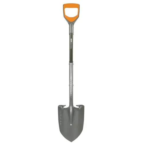 Winner of the Red Dot Best of the Best 2019 award. The Fiskars Pro D-handle digging shovel features ultimate durability, making it ideal for digging and prying in tough soil. An extruded aluminum handle ensures superior strength, while double bolted connections guarantee the tool will not come apart. The heavy-gauge spade has a sharpened edge that makes it easier to dig and chop roots. A large step provides more stable footing, while the shaft angle is optimized for digging and prying. The shaft is also teardrop shaped to better fit the contours of your hand. An angled, high-visibility handle also features Softgrip touchpoints to reduce repetitive fatigue. Additionally, the D-handle design keeps your wrist in a neutral position to reduce strain, while its shorter length allows you to work in tight spaces. The simple, heavy-duty construction of this shovel makes it a reliable choice for daily, quality performance under all conditions.