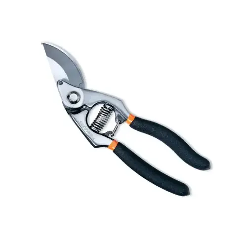 Our forged pruner features forged steel construction for excellent durability and an ergonomic design with an angled cutting head that helps reduce wrist fatigue. A fully hardened, precision-ground forged steel blade stays sharp and the handle includes non-slip grips.