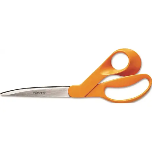Ideal for a vast array of office cutting tasks. Precision ground, stainless steel blades provide accurate cutting and lasting sharpness. Tested to ensure clean cutting through multiple layers of cloth. Cut Length: 4 1/2 in; Scissor Length: 9 in; Tip Type: Pointed; Handle Type: Bent.