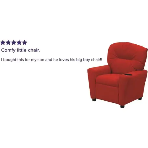 Contemporary Red Microfiber Kids Recliner with Cup Holder