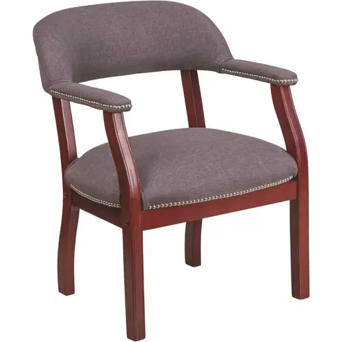 Add timeless charm to your space with this elegant reception/conference chair. This chair features gray fabric upholstery, contoured cushions and an open back design. Designed with upholstered straight arms and attractive silver nail accents, this chair adds a distinctive touch to any setting. For long-lasting performance, this conference chair is built with a sturdy hardwood frame. This chair will complement reception areas, libraries or your office as a guest chair.