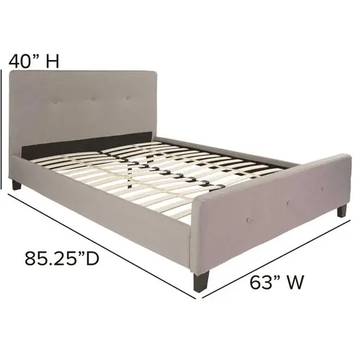 This casual looking platform bed has button tufting that adds a nice touch to display a unique look in your bedroom. If you're on the market for a bed frame that provides an open concept feel, this bed provides that in a stylish package. The headboard won't take up too much wall space so you can add decorative art above its frame. With a low set footboard it makes a presence that won't overrun your space. The matching button tufted headboard and footboard unify the design. The frame has wooden slats that are designed to support your mattress without the use of a box spring. Update your bedroom or guest bedroom furniture with this easy-going bed frame, add your desired mattress and let sleep carry you away.