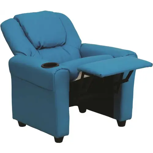 Contemporary Turquoise Vinyl Kids Recliner with Cup Holder and Headrest