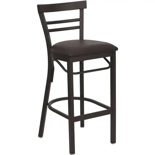 Create a first-rate dining experience by offering your patrons great food, service and attractive furnishings. Metal barstools are a popular choice for furnishing restaurants, pool halls, lounges, bars and other high traffic establishments. This 2-slat ladder back metal restaurant barstool is easy to clean, which is an important aspect for a business. Built to withstand everyday use in the restaurant and hospitality business, these dining stools will also look great in your home. The thickly padded black vinyl upholstered seat will keep guests comfortable. The frame is stabilized using two welded support bars, which includes a footrest. The floor glides help protect your floors and ensure smooth gliding. Use this bar height stool in your dining room or home bar to give your decor a fresh look. The simple and lightweight design of this stool is a must have, whether used in the home or your commercial business.