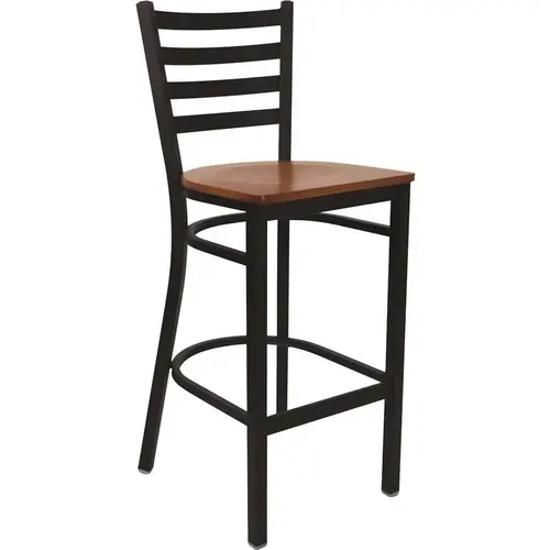 Create a first-rate dining experience by offering your patrons great food, service and attractive furnishings. Commercial furniture needs to be both durable and low maintenance so metal barstools are a popular choice for furnishing restaurants, pool halls, lounges, bars and other high traffic establishments. This stool is easy to clean, which is an important aspect when it comes to a business. Built to withstand the everyday hustle and bustle in the restaurant and hospitality business, these dining stools will also look great in your home. The beautiful wood seat and ladder back design will keep guests comfortable. The frame is stabilized using two welded support bars, which includes a footrest to prevent leg discomfort. The floor glides help protect your floors and ensure smooth gliding. Use this bar height stool in your kitchen, dining room or home bar and give your decor a fresh look. The simple and lightweight design of this stool will not disappoint, whether used in the home or your commercial business.