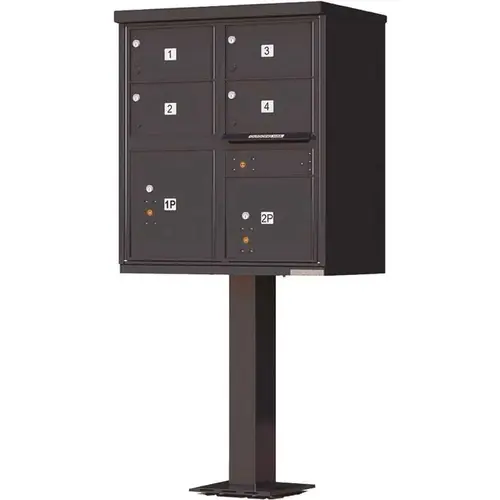 Florence CBU with pedestal is the perfect solution for your centralized mail delivery with 4 oversized mailbox and 2-Parcel Lockers. The Florence 1570 cluster box design has been adopted by the USPS as the design standard for all CBU's manufactured.