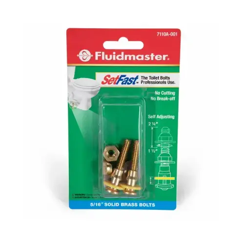 FLUIDMASTER SETFAST Toilet Bolt Set, Specifications: 1-1/2 to 2-1/4 in Self-Adjusting, Brass, Number of Pieces: 2, Includes: Hardware