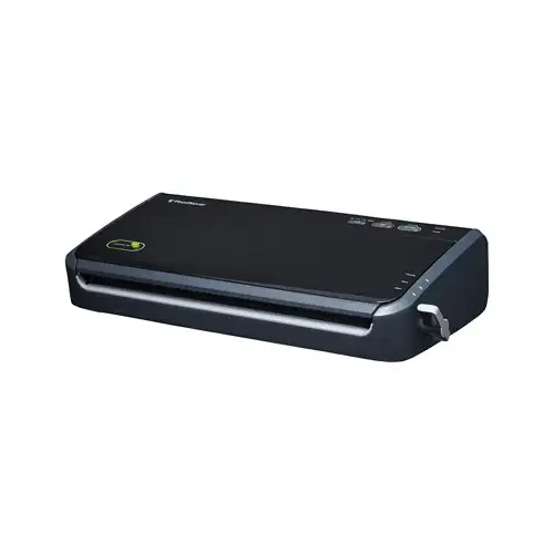 Keeps food fresh. Compatible with the FA2000-000 Handheld Sealer for use with FoodSaver zipper bags and all other accessories. Latch and lock operation. Convenient roll storage and roll cutter. Accessory port and hose vacuum seals canisters and marinates food. Includes 3 quart bags, 2 gal bags, 11 in x 10 ft roll and accessory hose.