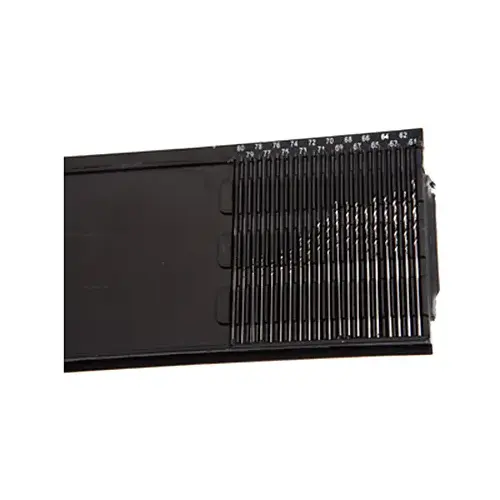 Bit sizes 61-80 for precision drilling of wood, plastic and metal. Includes convenient steel index storage case. Max rpm 30,000.