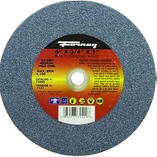 Forney 72400 Bench Grinding Wheel, 6 in Dia, 1 in Arbor, 60 Grit, Medium, Aluminum Oxide Abrasive