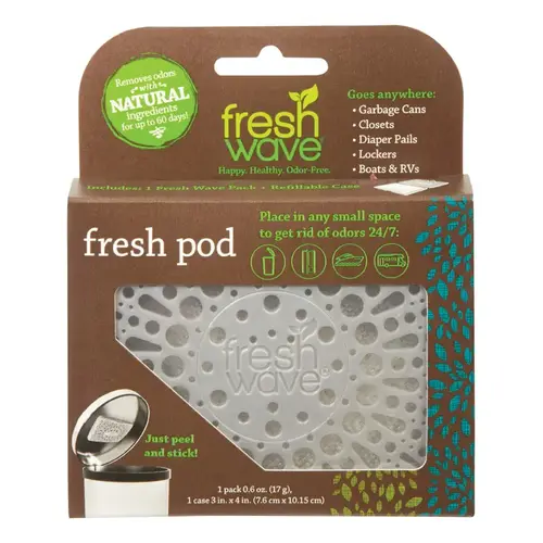 Stick it to big odors in small spaces with Fresh Wave Pod. Each Pod includes a refillable pack of odor-removing beads to completely remove odors using safe, natural ingredients - no toxic chemicals or fake fragrances. Just peel off the adhesive backing and attached to a clean, flat surface. Replace packs every 30-60 days for continued freshness. Use in garbage cans, closets, diaper pails, lockers, cars, boats RV's.