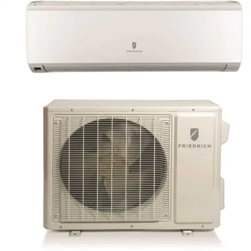 FRIEDRICH Select series ductless split systems have excellent efficiency and outstanding quality which make them an exceptional value line. Inverter compressor technology is more energy efficient and can self-adjust capacity to match cooling needs and extend the life of the system. Multiple operating modes allow for user flexibility- auto, cool, dry, fan only and heat. TURBO mode operates the unit at maximum performance to quickly bring the room to set temperature. The select series line also comes with our DiamonBlue technology- which is our advanced corrosion protection to extend longevity. The units come with a 24-hour timer and sleep timer, as well as an LCD remote for manual control. The select series has a 5-year parts warranty and a 7-year warranty on the compressor.