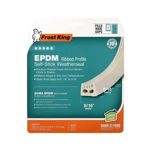 Frost King V27WA Weatherseal, 9/16 in W, 10 ft L, EPDM Rubber, White