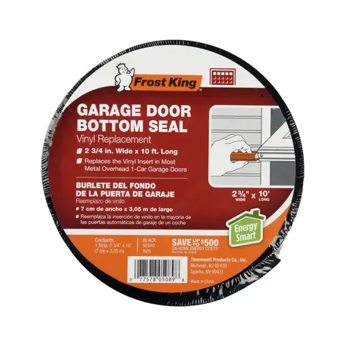 Frost King RV9 Garage Door Seal, 2-3/4 in W, 10 ft L, Vinyl, Black