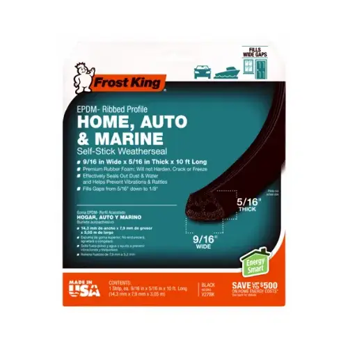 Frost King V27BK Weatherseal Self-Stick Tape, Subzero, 5/16 x 9/16 In. x 10 Ft. Black