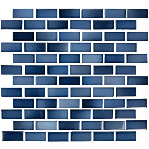 Glasstel Indigo 1x2 Tile (FW-GTI) features 7/8 x 1-7/8-inch porcelain tiles on a 12x12 sheet, offering a glass-like matte finish with rich indigo hues. Ideal for pool waterlines, spas, and backsplashes, its durable, frost-proof design ensures lasting elegance, with easy installation for vibrant, stylish wet environments.Compatible with pool waterlines, spas, walls, and fireplaces; suitable for indoor/outdoor use, per Fujiwa specs.Specs: 7/8" x 1-7/8" tiles; 12" x 12" sheet; 1 sq. ft.; porcelain; <0.5% water absorption; meets Tile Council of North America standards.Installation: Apply with thin-set mortar (e.g., Litoelastic) on concrete or backer board; tools: 1/8" trowel, tile cutter; use non-sanded grout for tight joints.