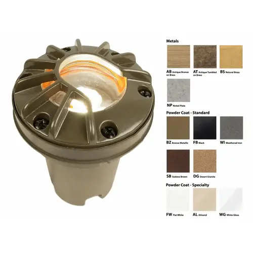 FXLuminaire FCZDCLVBZ Designer Premium Series 4.5" x 4" Bronze LED ZDC FC In-Grade Light with Louvered Faceplate. The FC is an ideal fit for any LED application, featuring an innovative installation sleeve that allows for easy removal and adjustment, especially in concrete. The FC also features four faceplate options and is up to 9LED capable. The new ground wash faceplate for the FC is field-adjustable and offers a no-glare design that complements deck and patio applications.