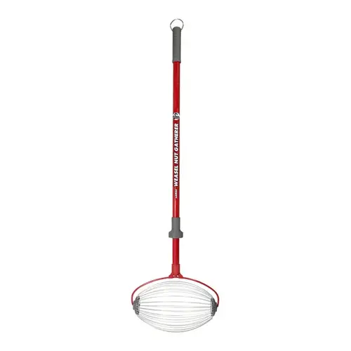 Picks up objects 1-1/2 to 3 in size such as walnuts, sweet gum balls, magnolia seed/flower heads and even small fruits. Capacity is approximately 1-1/2 gal. Does not pick up acorns or pecans. The Weasel large nut gatherer is an easy to use rolling pick up tool, for nuts and more. No bending over. Saves time.