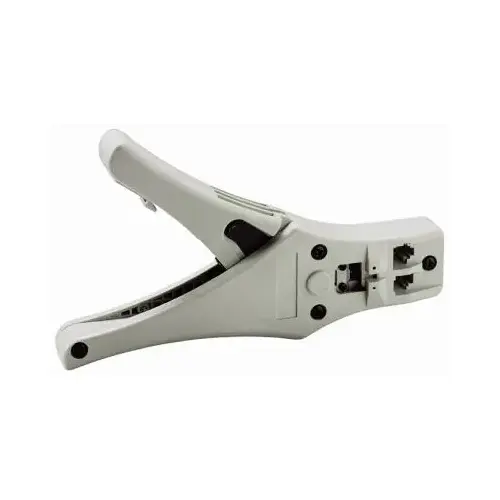 Used to produce patch cable and handset cables, cut, strip, and crimp. RJ-11 and RJ-45 plugs, 2, 4 and 8 pins. Carded.
