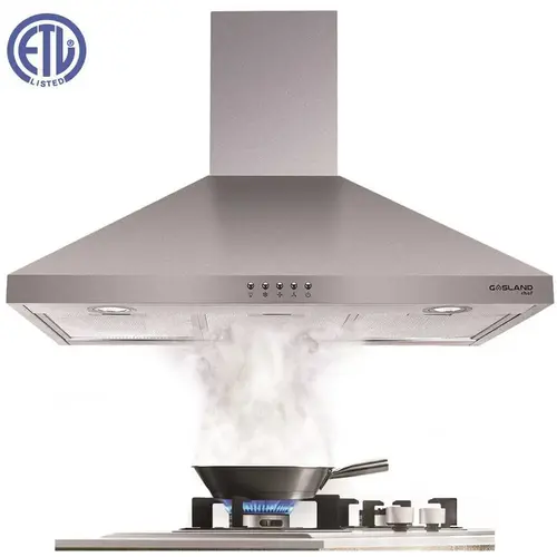 The GASLAND Chef 30 in. wall-mount range hood can quickly ventilates your kitchen quietly competing with other kitchen range exhaust fans hoods. The exhaust system is made for heavy duty cooking, ensuring the removal of grease, odors and potentially toxic pollutants from the air in your kitchen. The range hood features 5 push buttons with 3-speed settings makes it full easy control at your fingertips. The adjustable square duct pipe and installation kits make the installation easily.