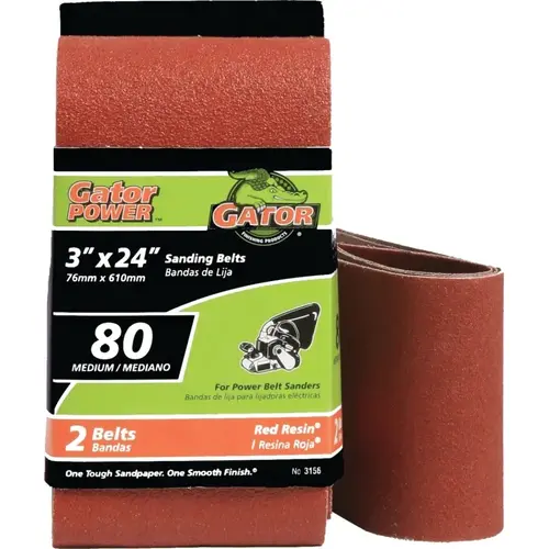 Gator Aluminum oxide sanding belts are designed to fit the most popular portable belt sanders offered today. These industrial-quality belts have long set the standard for quality and value. From the durable red resin bonding system, it resists heat build-up and humidity for longer life to the bi-directional flush joint that runs smoothly in both directions. Gator sanding belts are your first choice for your next project calls for using your portable belt sander.