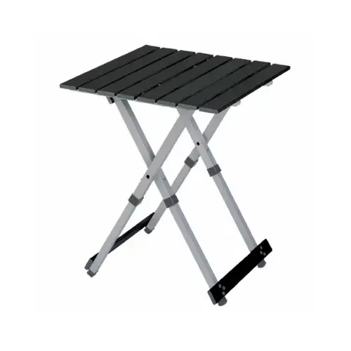 Black Compact Camp Table 20. A folding camp table with a unique one-piece design. Holds up to 60 lbs., making it a great table for two or side table.