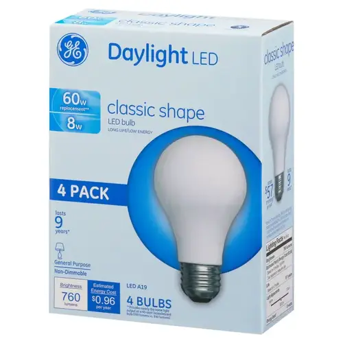 GE 8W LED Daylight A19 Bulb - Equivalent to 60W Non-Dimmable Clear