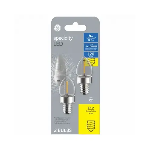 GE 93129196 LED Bulb C7 E12 (Candelabra) White 5 Watt Equivalence Clear Pair