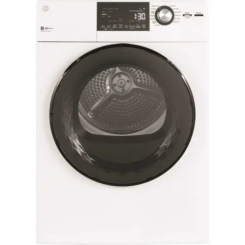 The GE 4.3 cu. ft. Electric Dryer has 4 heat selections and 13 dry cycles for flexibility and enhanced drying performance. An ideal choice for your home, this dryer has a delay start option for setting the dryer according to your schedule and a Sensor Dry system that monitors moisture levels and helps keep clothes looking their best. The dryer's Stainless steel drum has a smooth surface to help prevent rust and protect clothes and its reversible dryer door offers installation flexibility.