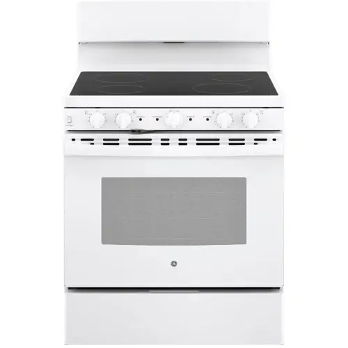 GE ESTAR 30 Free-Standing Electric Radiant Smooth Cooktop Range, White, ADA. Assembled Dimensions: D 29 In. X H 47 In. X W 30 In. 5.0 Cu. Ft. Oven Capacity. Ada Compliant. Energy Star Qualified. Self-Clean Oven Cleans The Oven Cavity Without The Need For Scrubbing. Dual-Element Bake - Upper And Lower Elements Produce Even Heat And Great Results. Removable Full-Width Storage Drawer - Large Trays And Other Cookware Can Be Conveniently Stored For Quick Access. Easily Accessible Front Controls Make It Simple To Control The Stovetop And Oven. Mfg #JB480DYWW